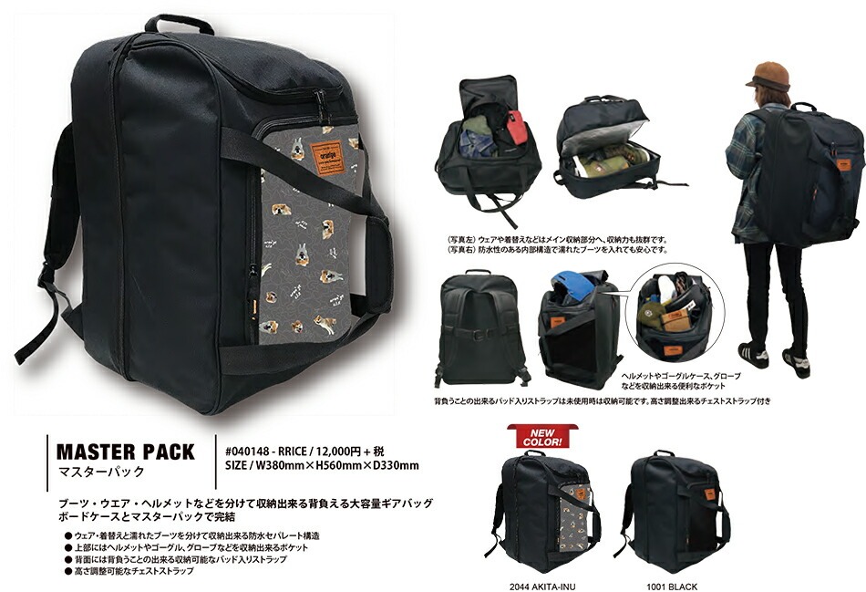 尺寸:W 38cm × H 56cm × D 33cm雪靴、衣服、安全帽等可以單獨收納。可背在背上的大容量裝備包