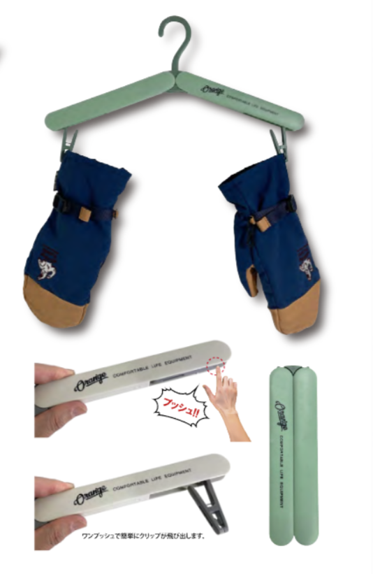 產品介紹 : 可折疊收納的衣架。- 只需一按即可輕鬆釋放衣架內側夾子 非常適合乾燥手套,護目鏡、毛帽、衣物等等 非常適合滑雪、自助旅行或車內使用