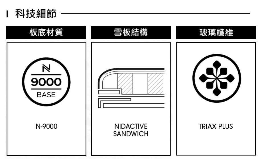 - N-9000 使用碳奈米粒子所製成,具有非常緻密的分子結構,使其成為速度最快、最耐用的板底材質。