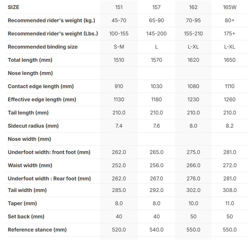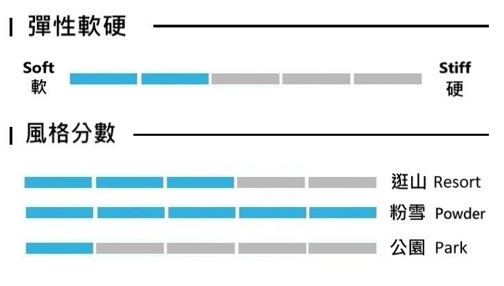 雪板核心採用輕質楊木和泡桐木混合材質,並在板頭和板尾處嵌入碳纖維,帶來極致靈敏的反應