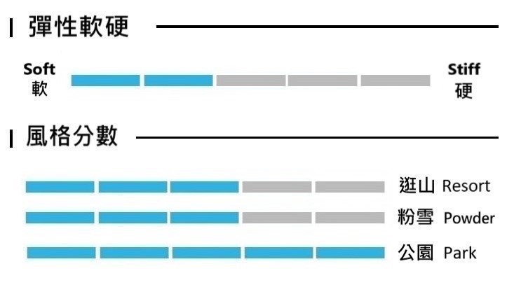 Gamma 的不對稱的雙向對稱板身使其在腳跟側轉彎時更容易保持刻滑穩定,並且在 switch 時也能保持良好的表現