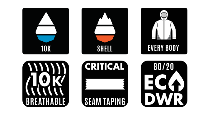 • 100% 再生聚酯纖維竹節紗,兜帽和肩部採用中磅牛津布料 + 80/20 無氟生態 DWR 防水塗層