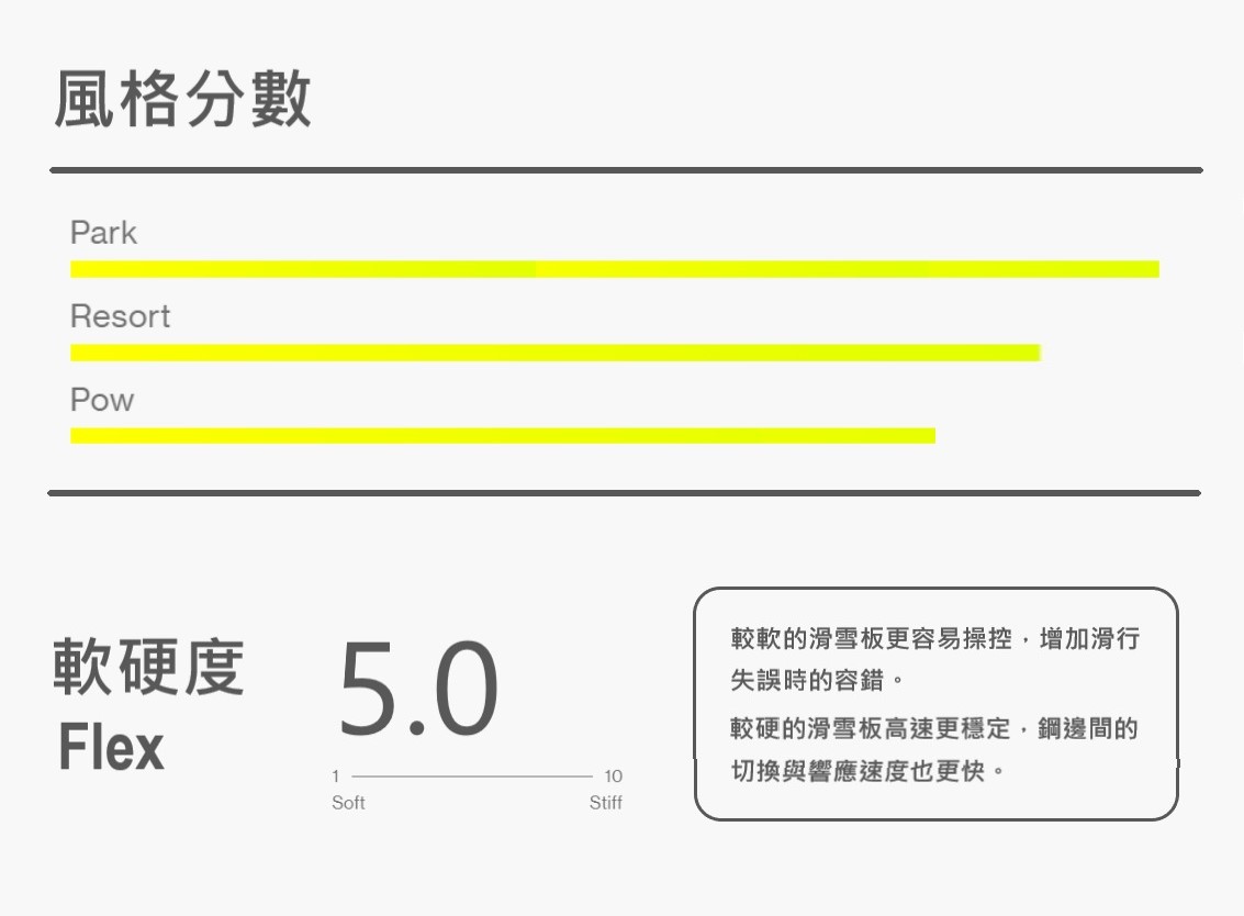 如果您想要兩全其美,各種風格都想接觸,那麼這款雪板就是您的最佳選擇。公園設施?計時賽?粉雪日? --- 沒問題!該板都能夠掌控。