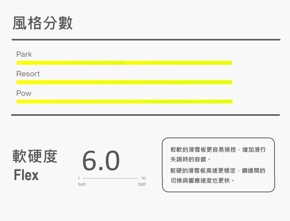 具有升級、更輕量的木芯和更快更滑順的板底,為了都是提高妳的技能分數。採用高品質材料,無論您是要掌握跳躍、衝鋒破雪還是刻滑換刃,它都能提供更高的反應和動態滑行體驗。