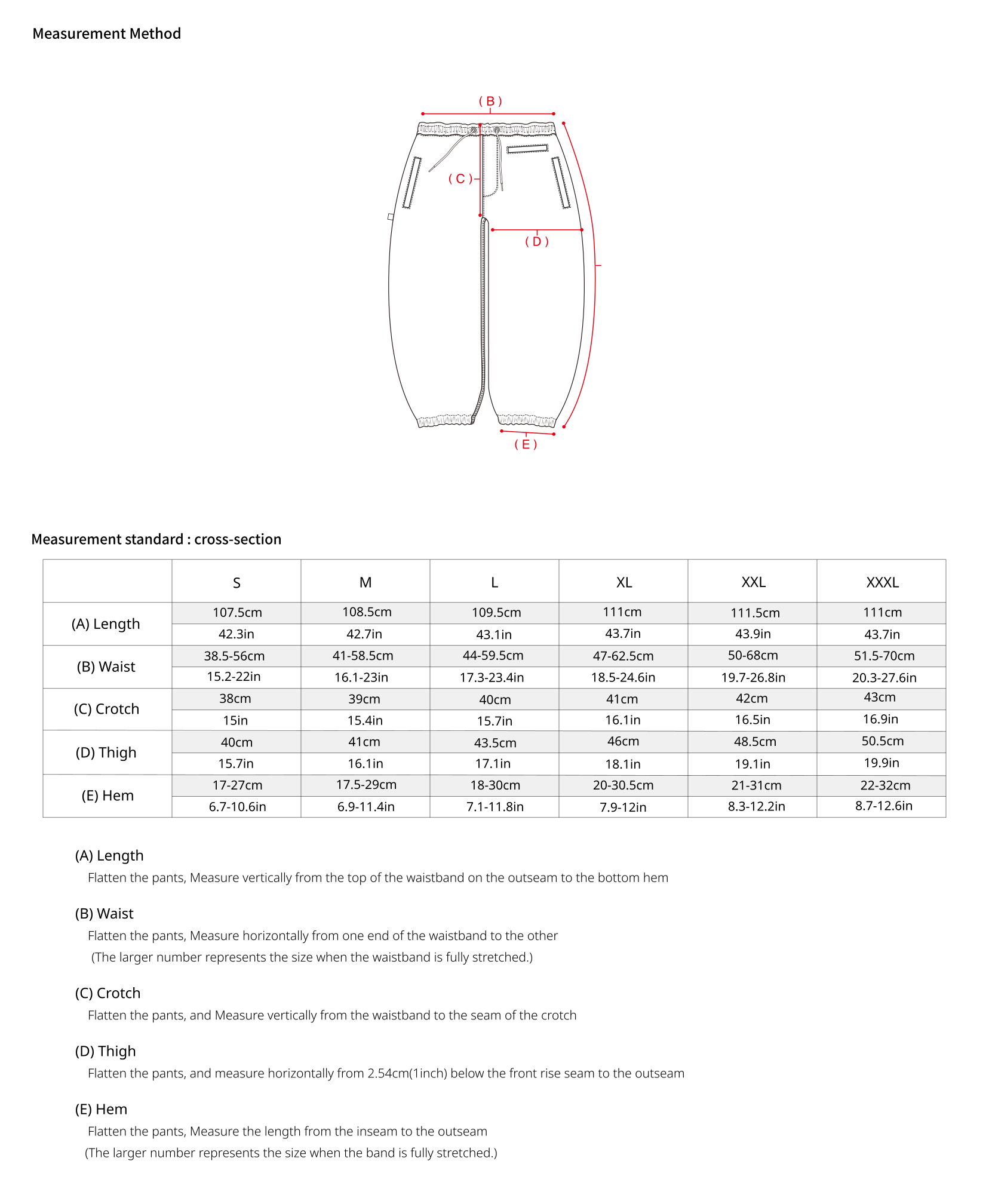 試穿時如褲長、袖長有過長跡象,則無需在意 (都能夠調整)。