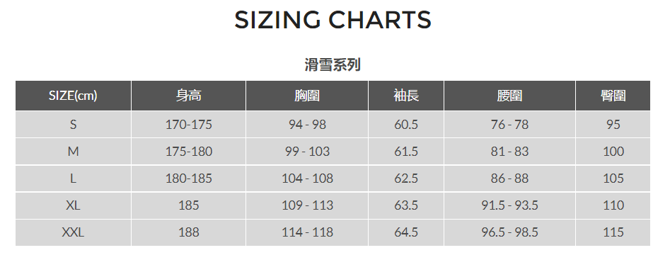 - 更多詳細的挑選雪衣褲尺寸指南,請至官網Blog網誌了解。