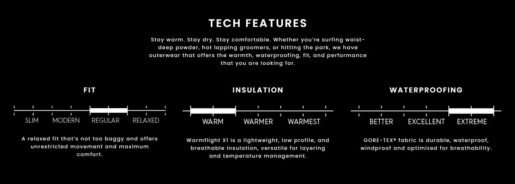 - 雪衣褲的板型,相較一般戶外機能性外套更加寬大寬鬆,如無經驗者,建議實際試穿為主。