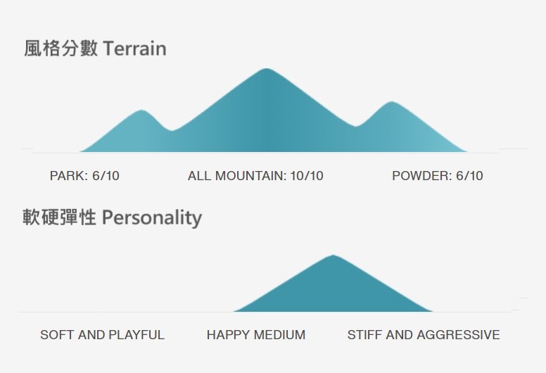 完全對稱的雪板彈性,無論是常規雪道滑行或是Switch,在表現上達成完美平衡的多功能性。