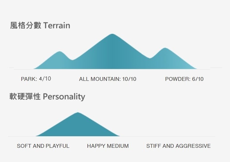 完全對稱的雪板彈性,無論是常規雪道滑行或是Switch,在表現上達成完美平衡的多功能性。