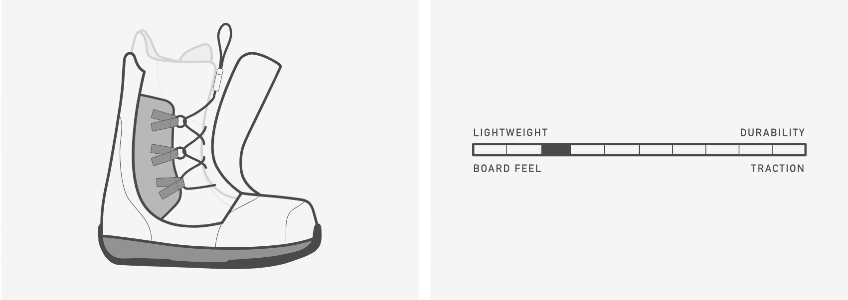 Imprint™ 3 Liner 等級最高的可熱塑內靴,提供高舒適性外吸濕排汗能力更佳,魔鬼氈設計能夠更緊密的貼合鞋舌,鞋跟加厚襯墊設計使腳跟密合度及支撐性更佳