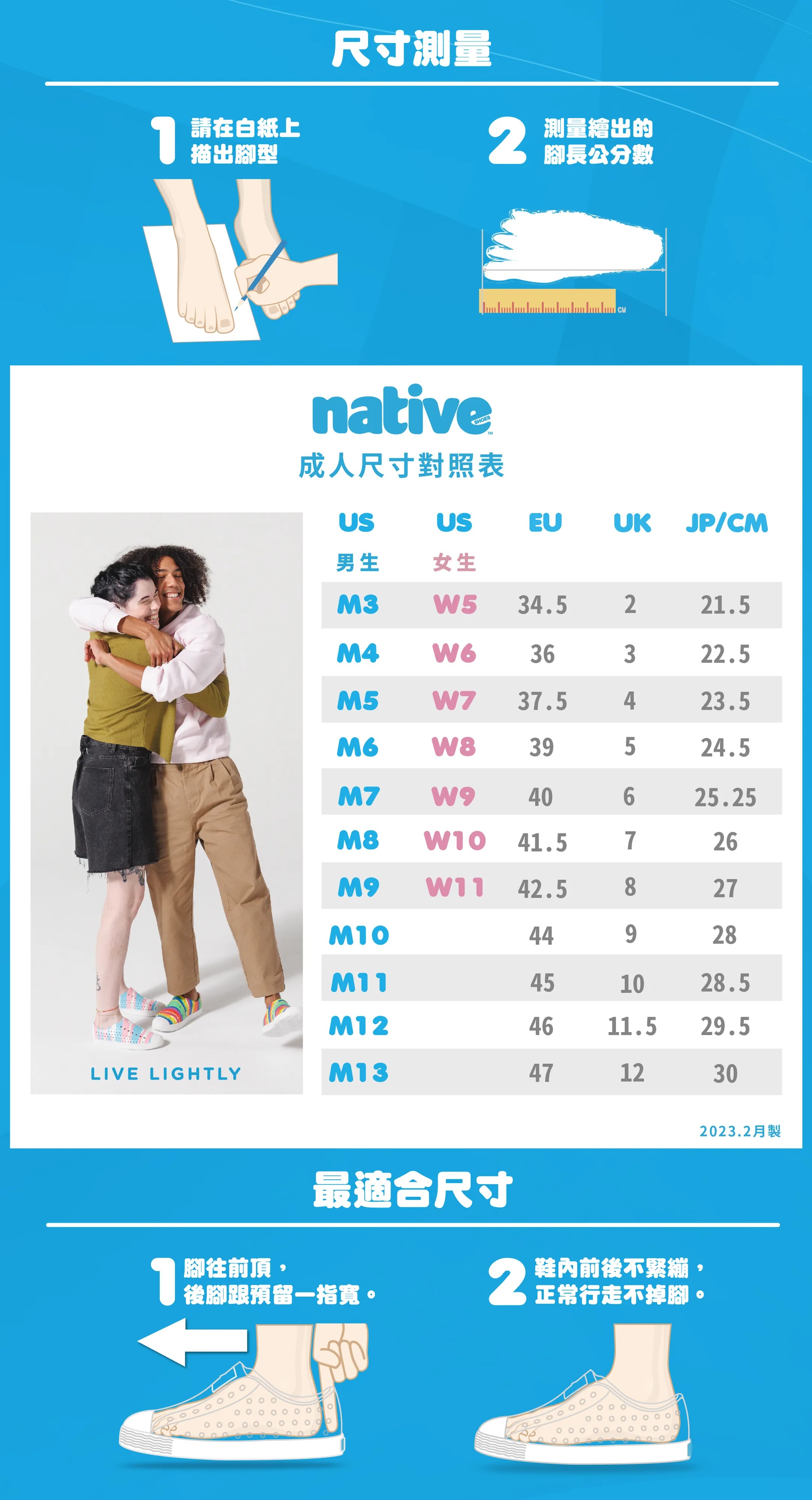 • 腳後跟建議預留一指寬度,較為舒適