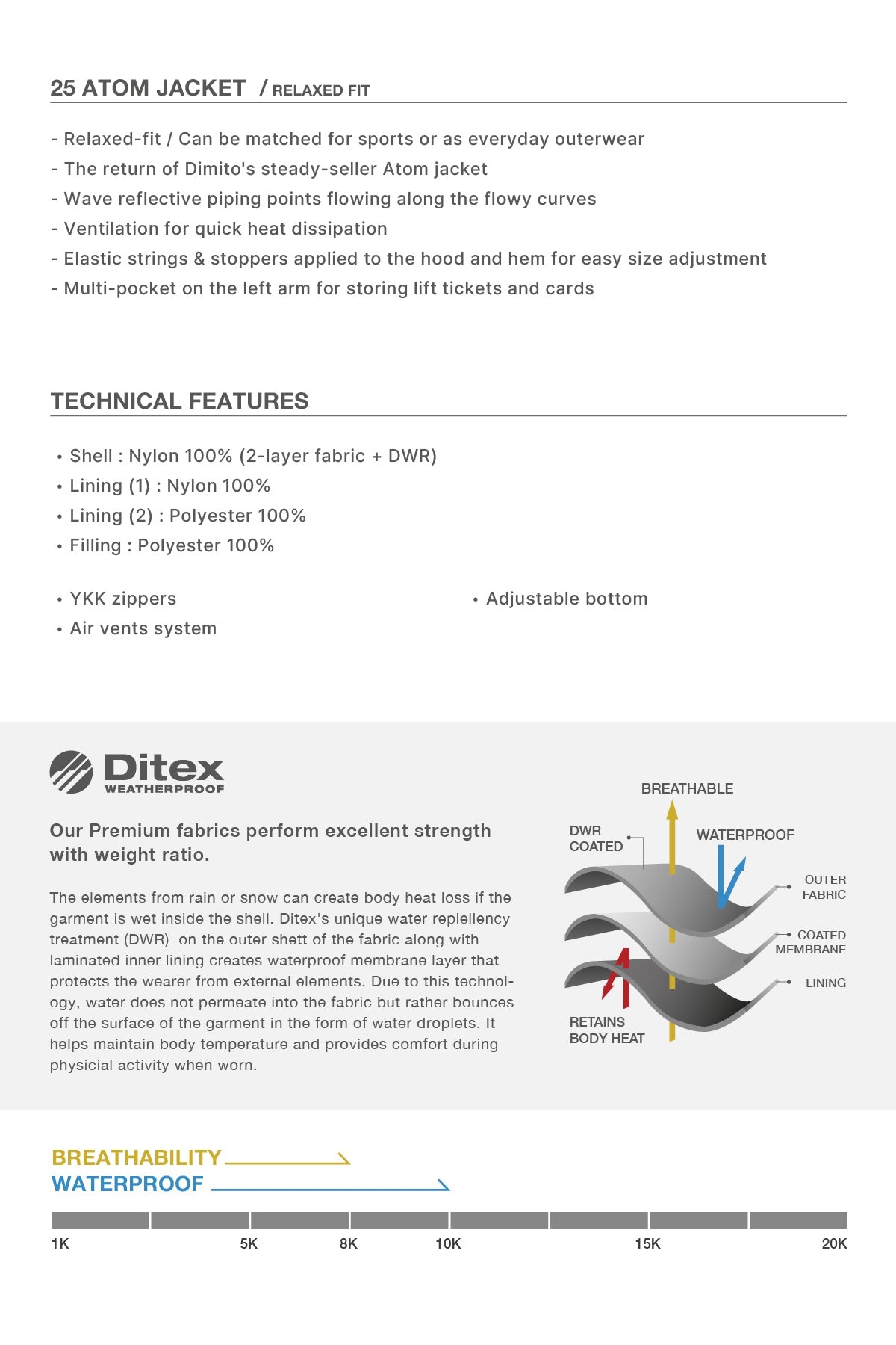 • Waterproof : 10K / Breathability : 8K