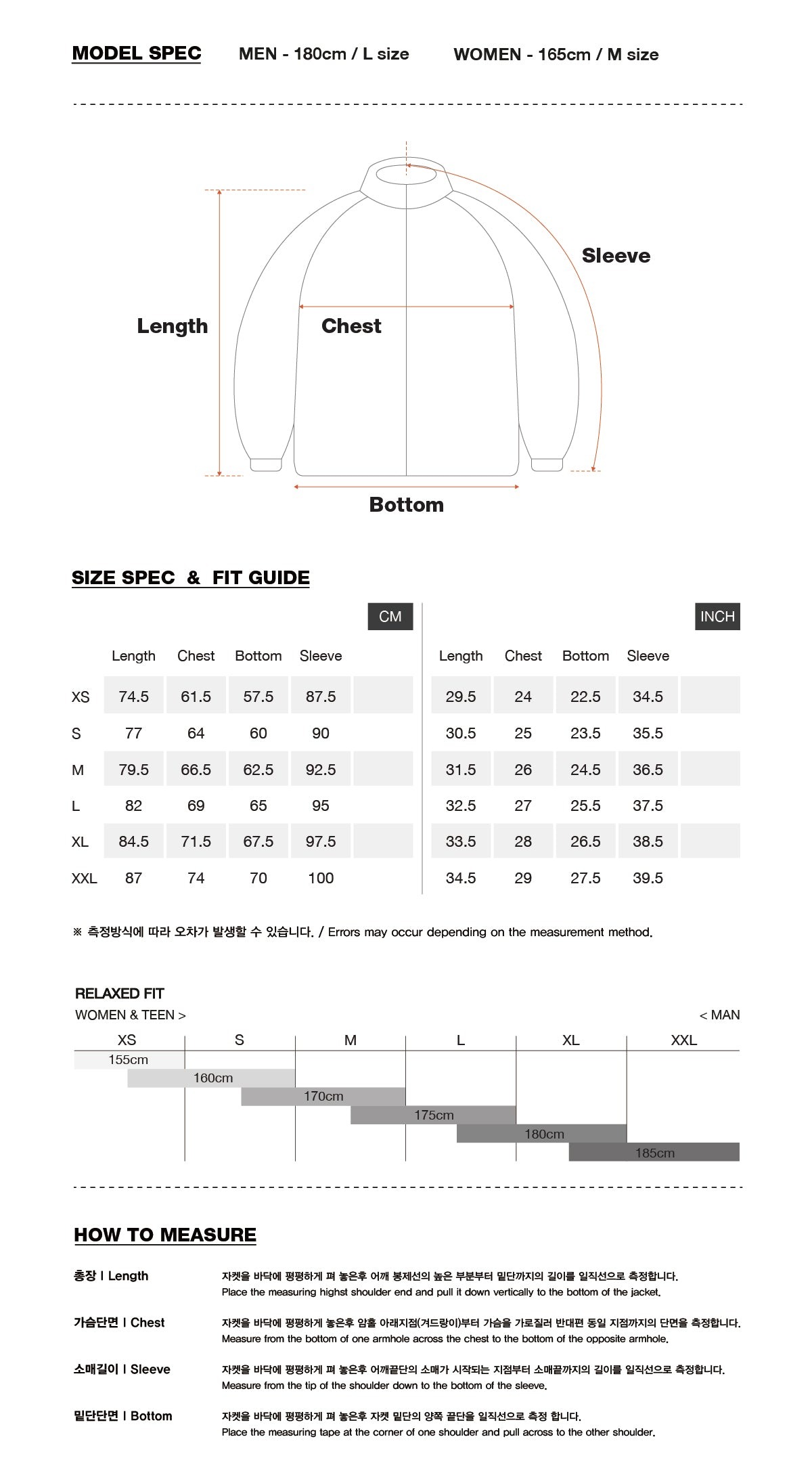 • 試穿時如褲長、袖長有過長跡象,則無需在意 (都能夠調整)。