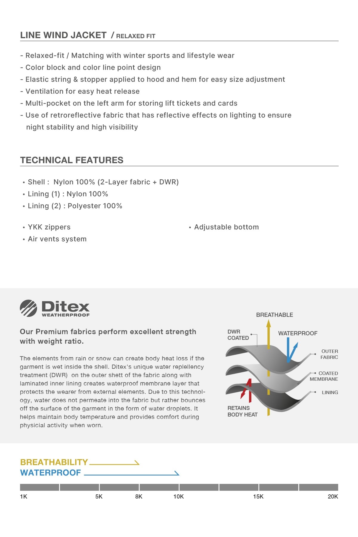 • Ditex 布料具有一流的抗水性和防水/透氣性能