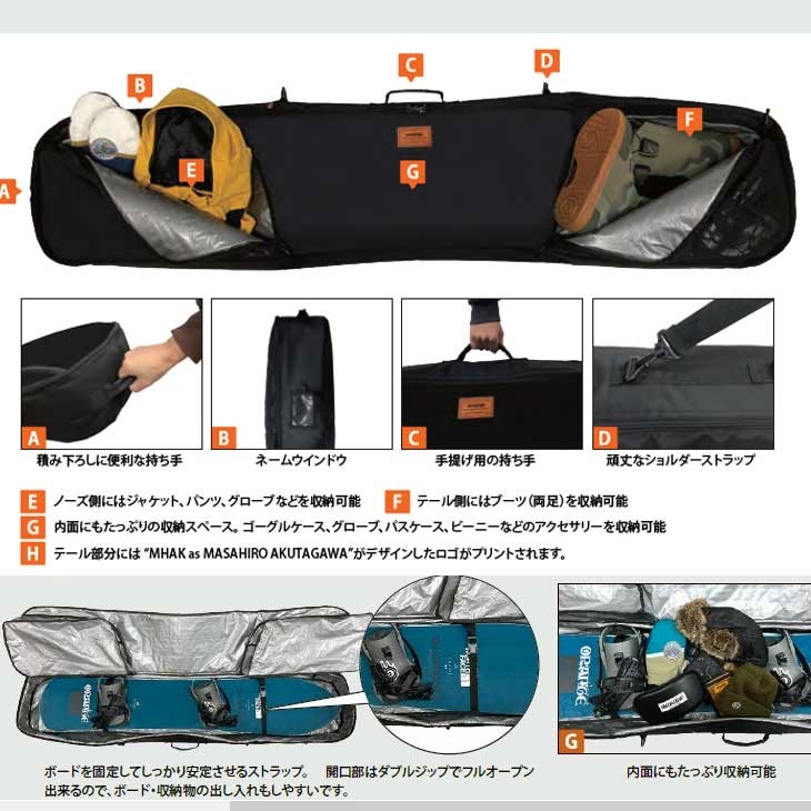 • 板袋內部內置兩條固定綁帶,可固定和穩定您的雪板