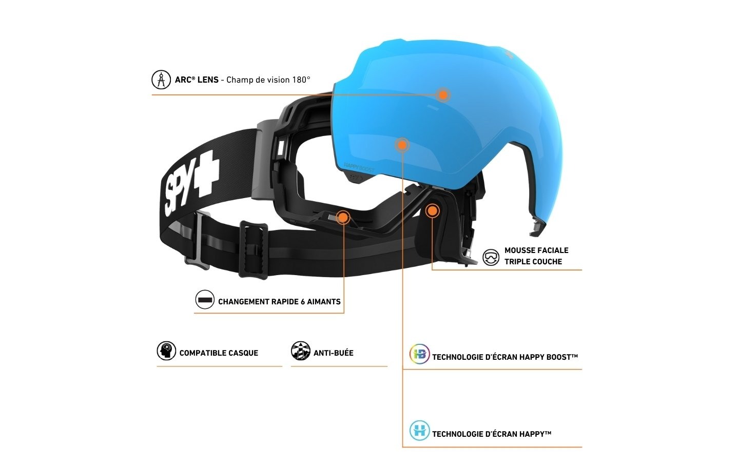 • 專利 HAPPY Lens 鏡片技術可增強色彩和對比度,提供與眾不同的視覺體驗。