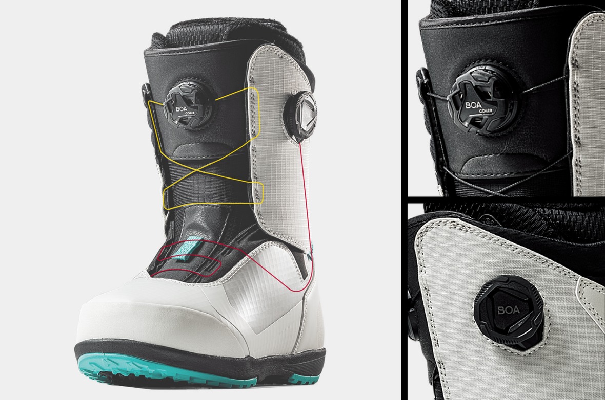 Tongue Mount : H4 Coiler : 專為單板滑雪設計的高效能 BOA 旋鈕,具備簡單、可靠且強大的緊度力量。