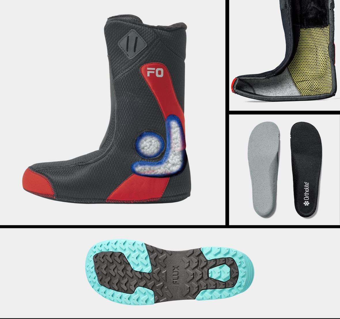 F GRID LINER : 立體網格結構可在皮膚表面形成空氣層,在保持溫暖的同時迅速散去濕氣,使靴內維持舒適乾爽。