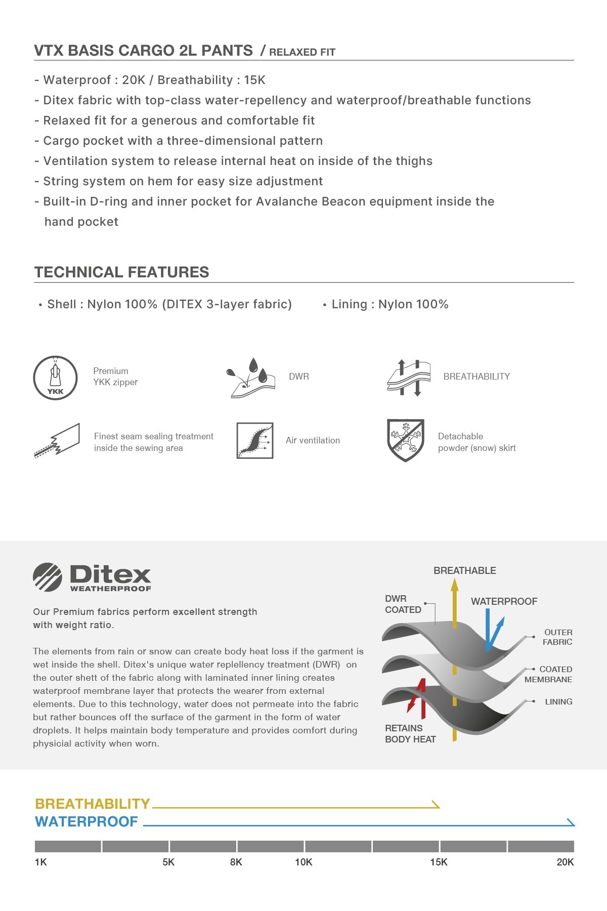 • 採用 Ditex 高機能布料,具備頂級防潑水、防水與高透氣性能