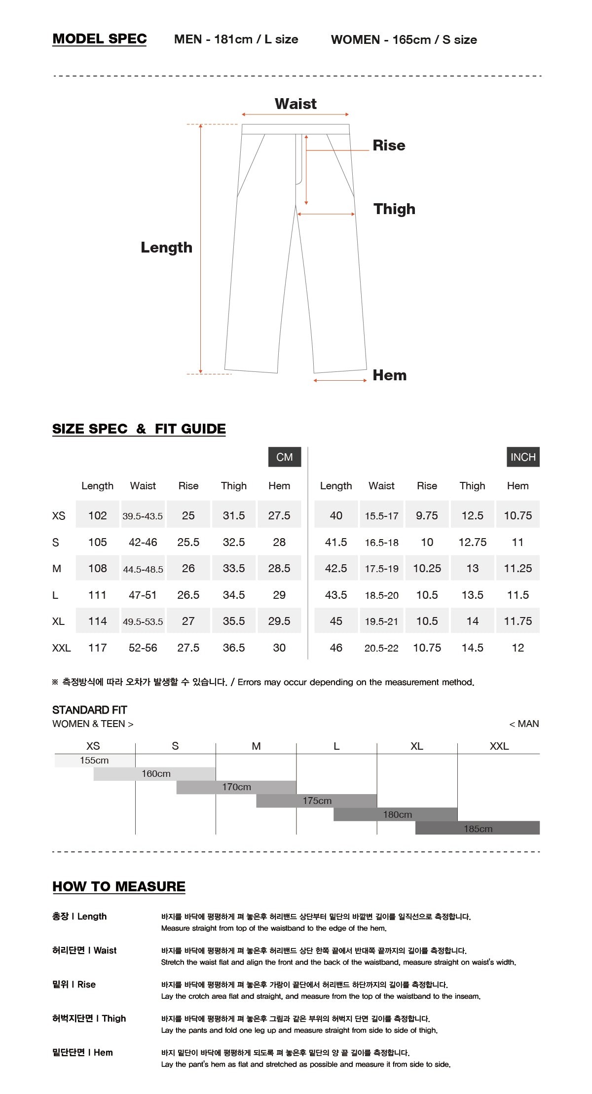 - 試穿時如褲長、袖長有過長跡象,則無需在意 (都能夠調整)。