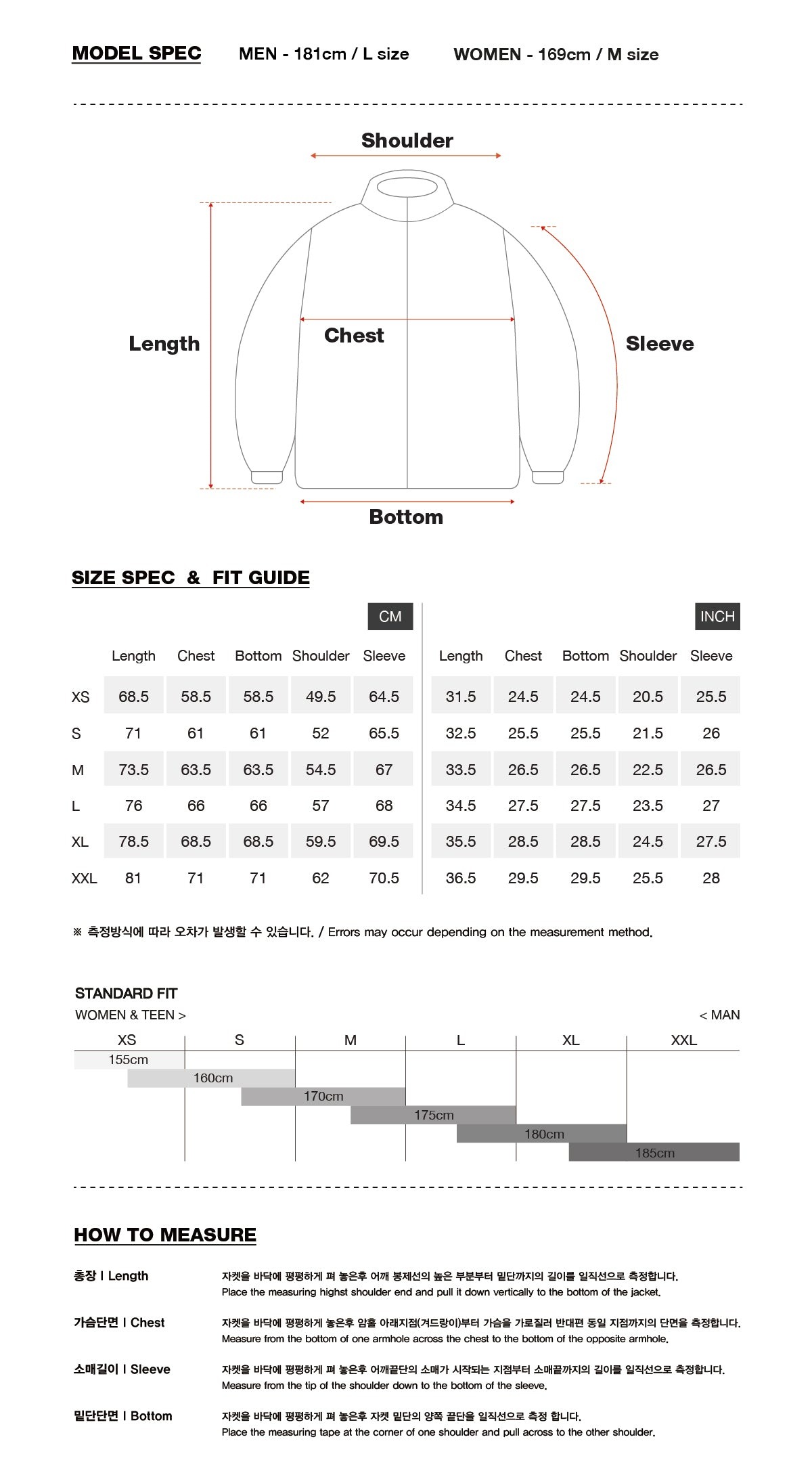 - 試穿時如褲長、袖長有過長跡象,則無需在意 (都能夠調整)。