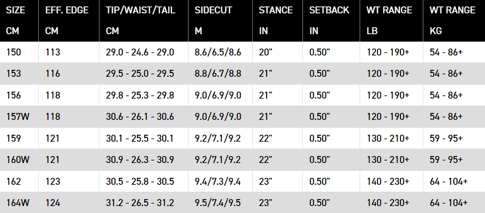 Hybritech™ Construction 混合結構技術 : Hybritech™ 是目前市場上最輕量且最耐用的滑雪板結構之一。透過移除板頭與板尾多餘的側牆材質,並加入 3D 封邊設計(Capped Edge),大幅強化玻璃纖維層與板身的結合力,同時降低板頭與板尾的擺動慣性。